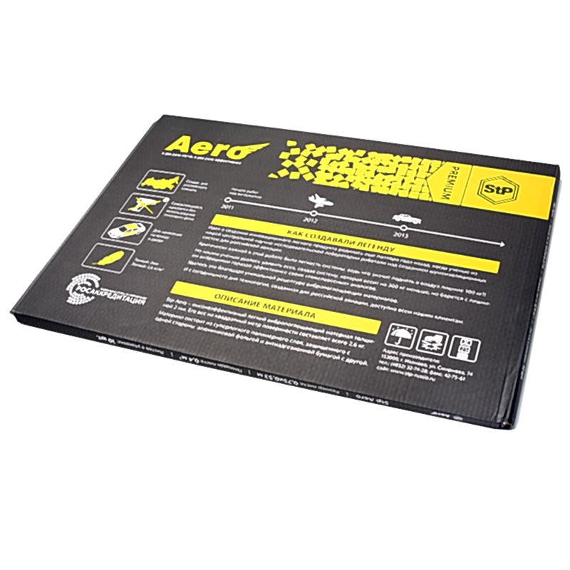 Лицевое покрытие: фольга черного цвета и тиснением «ромб», на покрытии имеется Пинап золотого цвета с логотипом StPAero.